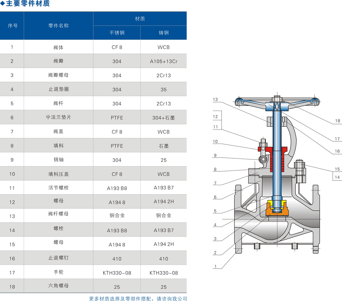 ⑥主體材料、內(nèi)件材料、填料、墊片、緊固件的材料可根據(jù)用戶要求或?qū)嶋H工況條件合理組合。