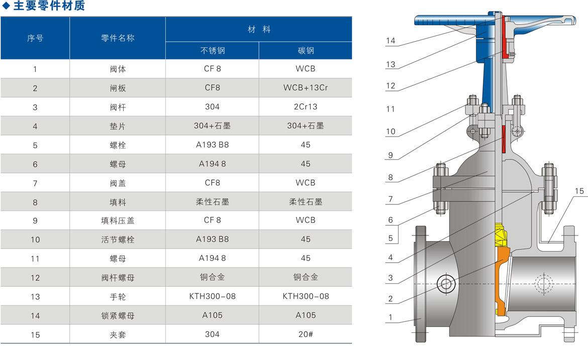 ⑥主體材料、內件材料、填料、墊片、緊固件的材料可根據用戶要求或實際工況條件合理組合。