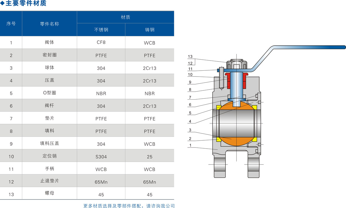 ⑦可靠閥座密封結構:公司多年來的球閥制造經驗與國際先進技術的結合而設計的雙線密封結構,可自然泄壓閥座,能保證高、低壓和真空狀態下的可靠密封。當介質壓力運行在低壓區時,閥座密封圈與球體接觸面積較小,故有較大的密封比壓,確保閥座可靠密封,當介質壓力運行在較高位時,閥座密封圈與球體的接觸面積增大,故閥座密封圈能承受較大的介質推力而不會損壞。對于工作壓力很低的球閥,考慮到介質壓力不能確保閥座的可靠密封,而預緊力長期使用后會衰退,故對于低壓,超低壓或真空工況用球閥,采用球閥,采用板簧加載的閥座密封結構,確保球閥長期可靠的密封。中、高溫球閥的閥座密封結構,采用對位聚苯作為密封圈可用于300°℃的溫度,而采用金屬密封耐高溫組合材料結構設計的球閥可用于更高的溫度。這種結構具有單向密封功能。