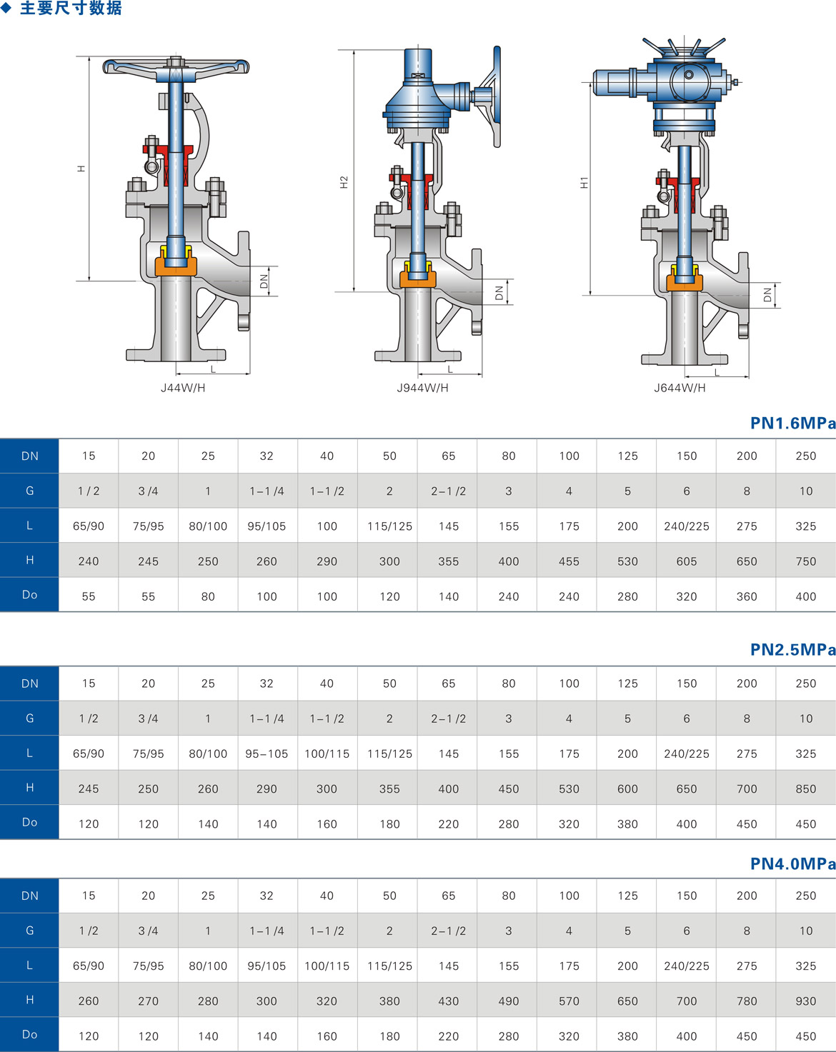 ①閥體和閥蓋連接形式:PN10~ PN100采用栓接閥蓋;PN160及以上采用自壓密封式閥蓋。