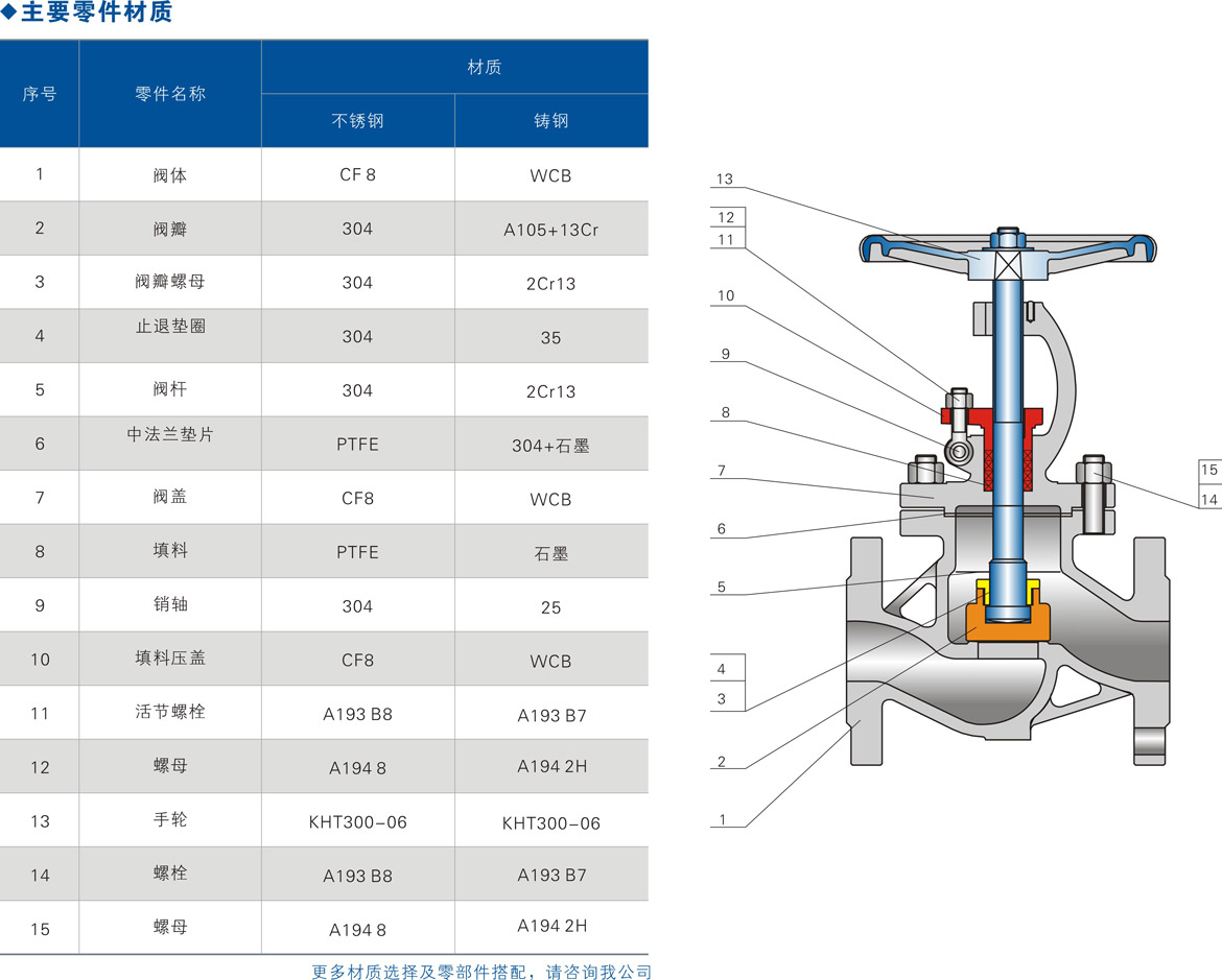 ⑤主體材料、內(nèi)件材料、填料、墊片、緊固件的材料可根據(jù)用戶要求或?qū)嶋H工況條件合理組合。