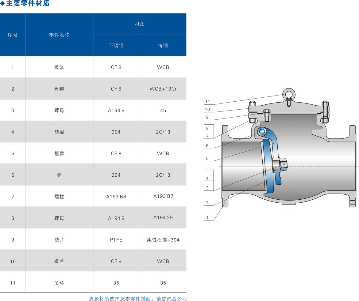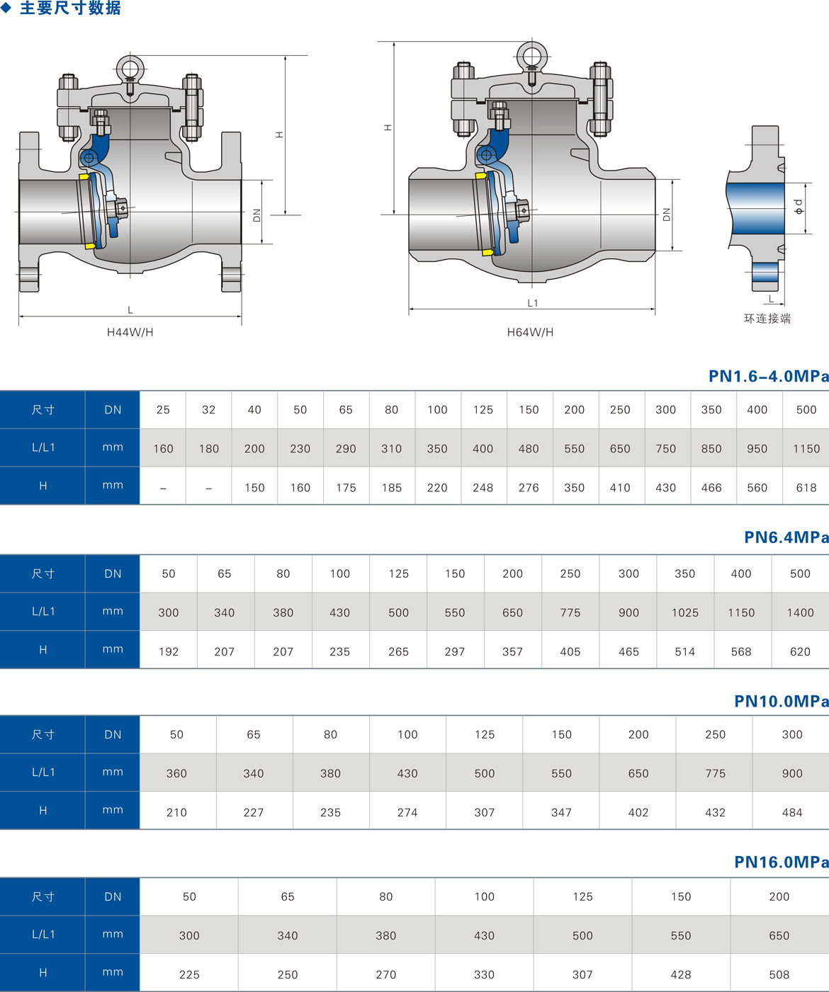 ⑥吊環設計:大口徑的止回閥設計有吊環,方便起吊。