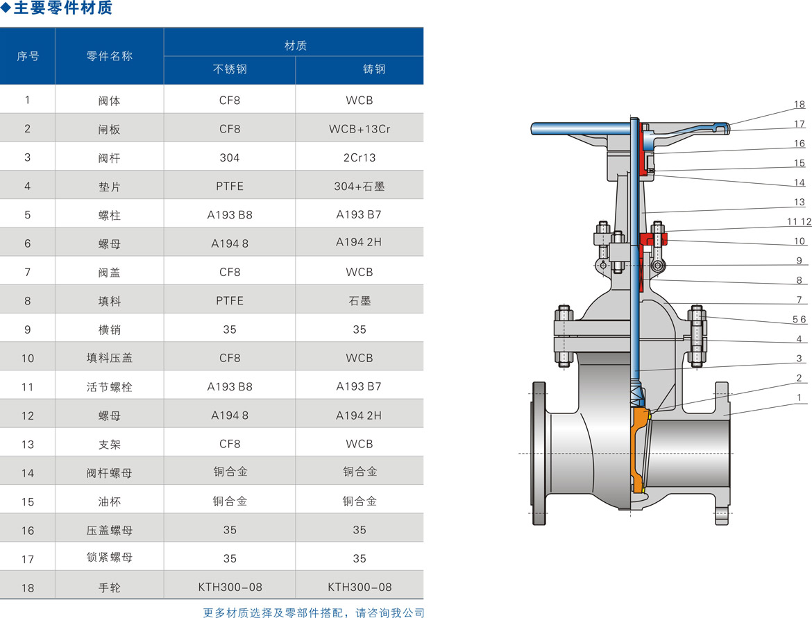 ⑤主體材料、內件材料、填料、墊片、緊固件的材料可根據用戶要求或實際工況條件合理組合。