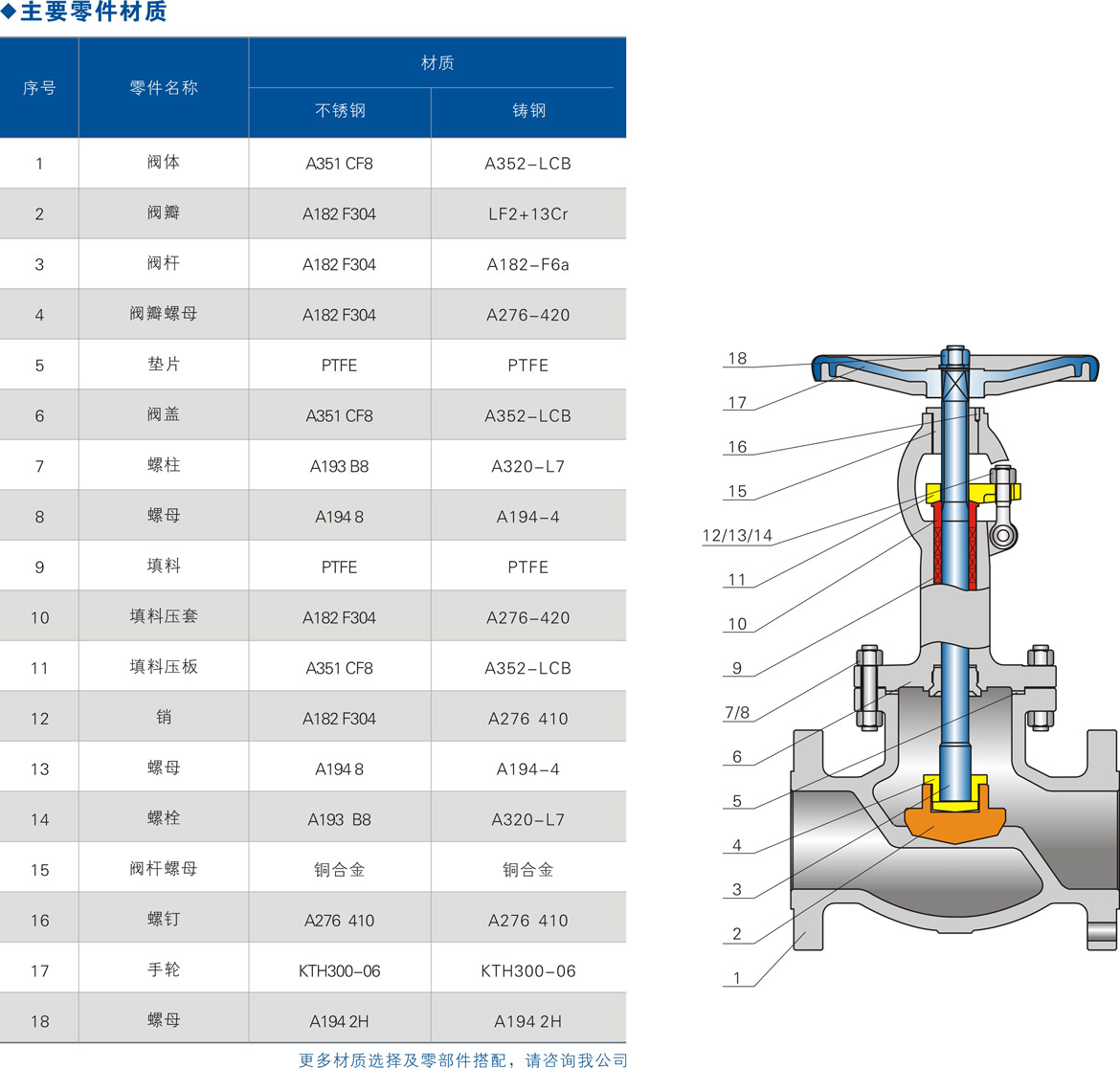 ⑨閥桿螺母:通常情況下,閥桿螺母材料采用銅合金。可以根據用戶要求采用高鎳鑄鐵等材料。對于大口徑的截止閥:閥桿螺母和閥桿之間設計有滾動軸承,可以有效減小截止閥的開啟力矩使閥門可以輕松開關。