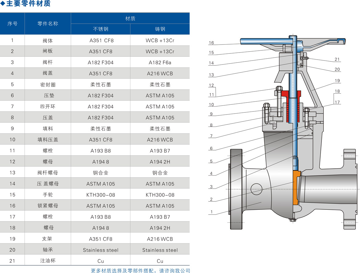 ⑥主體材料、內(nèi)件材料、填料、墊片、緊固件的材料可根據(jù)用戶要求或?qū)嶋H工況條件合理組合。