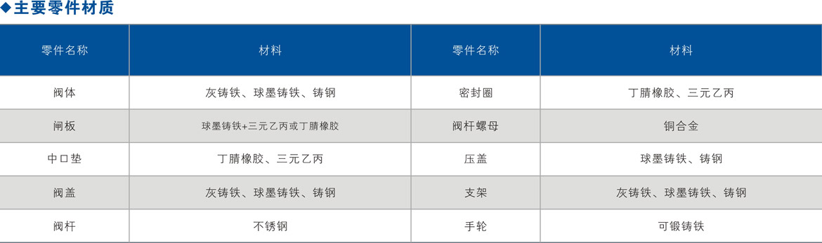 ②閘板設計:閘板采用球墨鑄鐵件外全覆無毒丁晴橡膠或者三元乙丙橡膠。