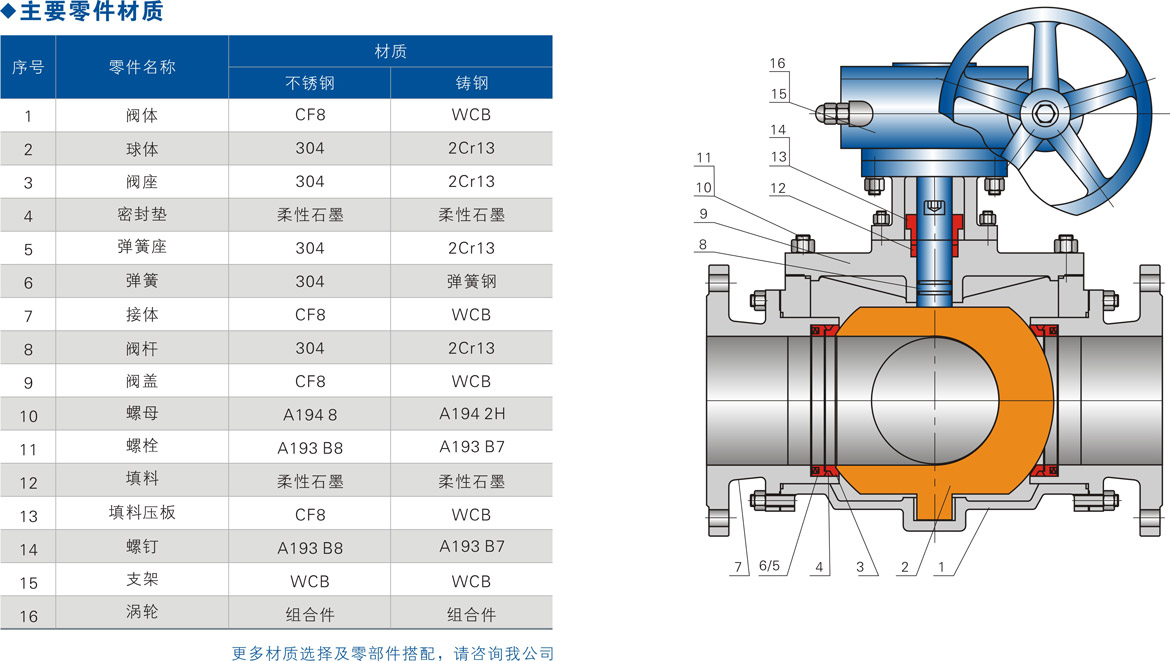 ⑥防火結構:當發生火災時,閥座材料被燒壞,大量泄漏的介質可能加促火勢。浮動球體在介質的推力作用下,推動到閥體上,形成短時間的密封,閥門的防火結構設計可阻止介質大量泄漏。在火災后,各泄漏部位(球體與閥體、中法蘭)設計成金屬接觸,從而阻止了介質大量的燒損從閥座處泄漏。